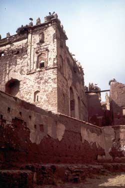 die verfaulten Dachbalken liegen im Innern der Räume. Von der Unesco